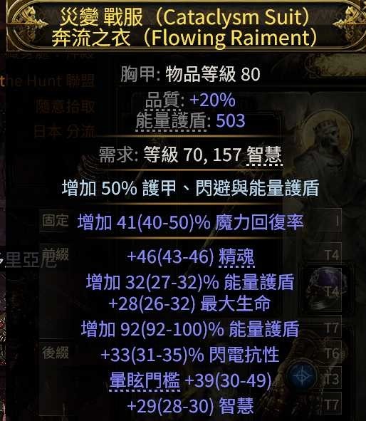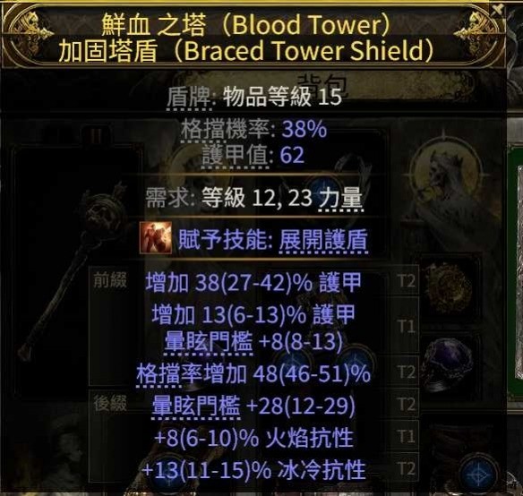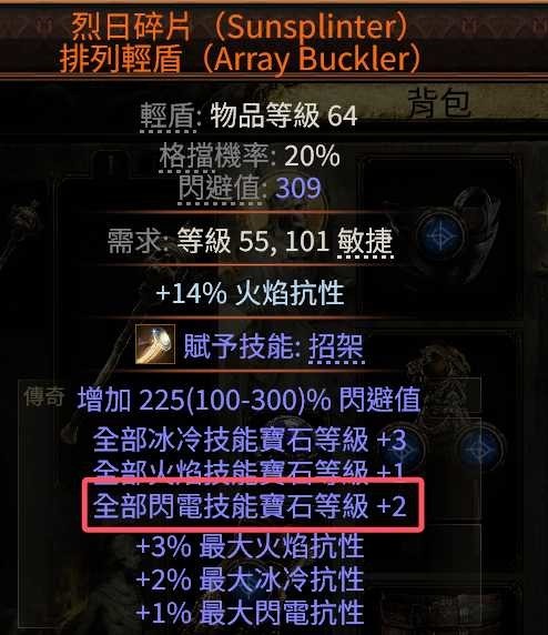 2、盾牌:血量、抗性过度,后期直接“烈日碎片·排列轻盾”,+2或者+3闪电即可。
