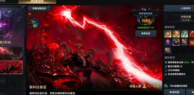 失落的方舟斯科拉基亚怎么打?斯科拉基亚是1680安装和其他分解锁的星尘护卫,其弱点是土系,作为T4的第二个BOSS,挑战并不难,古代手镯在击败后会掉下来,战斗道具建议携带信号弹、信息素和旋风雷,共有两个阶段,每个阶段都有一个核心技能捕获,虽然玩家在被捕获后不会受到实质性的伤害,但它会导致角色陷入一个短暂的被动状态,无法操作,开始是进入第一阶段,BOSS的捕获技能表现是用钳子横扫范围内的目标。
