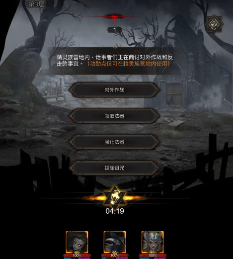 潜行护符可以让玩家跳过三场战斗,建议跳过一些重要的战斗,让球队以更好的状态面对最后一层的BOSS,拿到潜行护符后,点击对外作战。这里有三个种族可以挑战,建议第一次挑战矮人,选择矮人后,你会跳到9层。在这里,你应该用潜行护符避免战斗,在第十层,你只能选择快速逃跑,而不需要龙鳞裂缝,你有可能失去80%的生命,11层也要跳过战斗。如果你在前面扣血,你可以在12层恢复50%的生命。