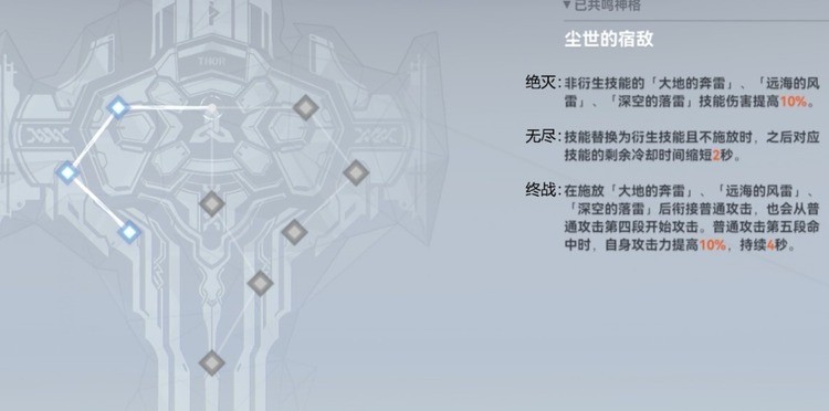 如果你有冥王星,打算抽轰雷托尔,你最好抽一个。如果你进一步追求更高的输出,你也可以考虑把轰雷托尔抽到SS。轰雷托尔神格左线的作用是降低技能冷却,提高获取印记的概率。使用时,轰雷托尔的输出周期会更舒适。这种神格的用法并不是说不需要衍生,而是通过冷却减少和释放技能,可以将第四、第五段的特效连接起来,加快获取印记,从而更频繁地释放衍生技能。全中线注重减伤生存,范围减雷抗,改善轰雷托尔在雷霆状态下的暴伤。使用方法类似于轰雷托尔的常规打法。
