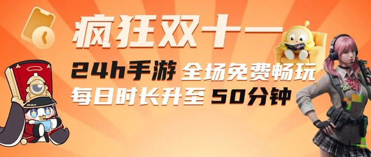 二、手游:双十一送疯了!全场手游免费畅玩,每日时长全面升级!