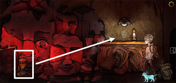 5.进门一直往右走。剧情结束后,逗猫棒放在书包里,继续往右走。注意手背上有宝石的手指,右边有一个盒子。根据蓝3紫8红4黄2绿1,点击打开盒子拿到红色种子